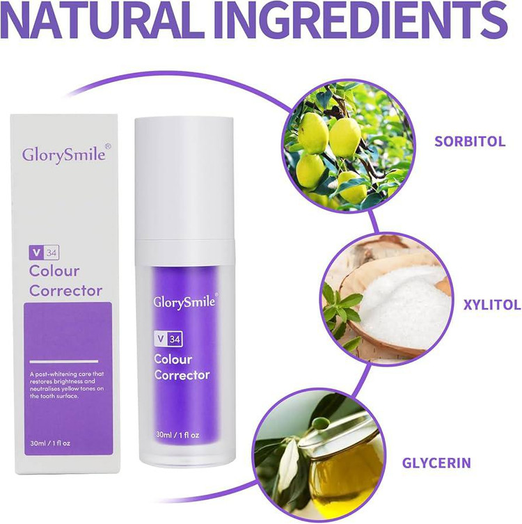 #سفیدکننده_دندان ژل سفیدکننده دندان Glory smile • بدون مواد مضر • سفیدکننده فوری و براق‌کننده دندان‌ها • خنثی‌کننده زردی دندان با رنگ بنفش • از بین‌برنده لکه‌های قهوه، چای و سیگار • مناسب استفاده روزانه • بدون اینجاد حساسیت • حفظ درخشندگی طبیعی لبخند