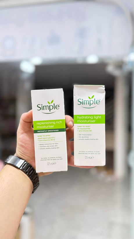 آبرسان سیمپل Simple در دو مدل ریچ و لایت آبرسان و مرطوب کننده قوی شاداب کننده و نرم کننده پوست ماندگاری ۱۲ساعته مدل جدید شرکت سیمپل حاوی ویتامینB5وE بافت سبک بر پایه آب صدرصد تضمنیی