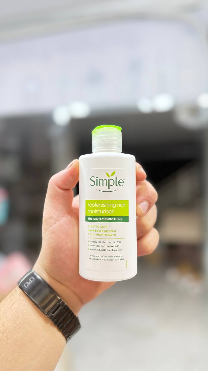 آبرسان سیمپل Simple در دو مدل ریچ و لایت آبرسان و مرطوب کننده قوی شاداب کننده و نرم کننده پوست ماندگاری ۱۲ساعته مدل جدید شرکت سیمپل حاوی ویتامینB5وE بافت سبک بر پایه آب صدرصد تضمنیی